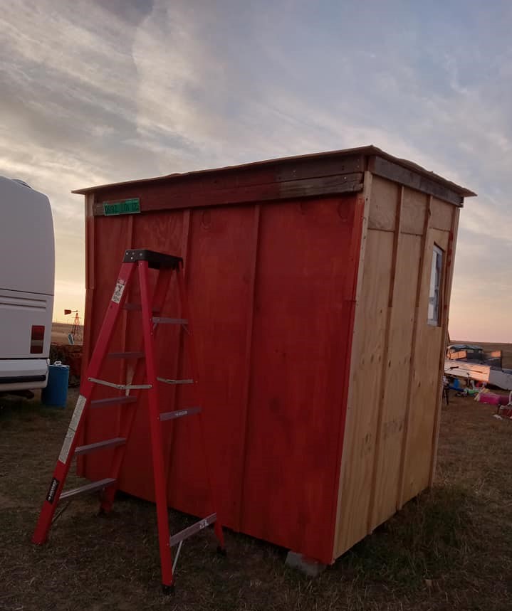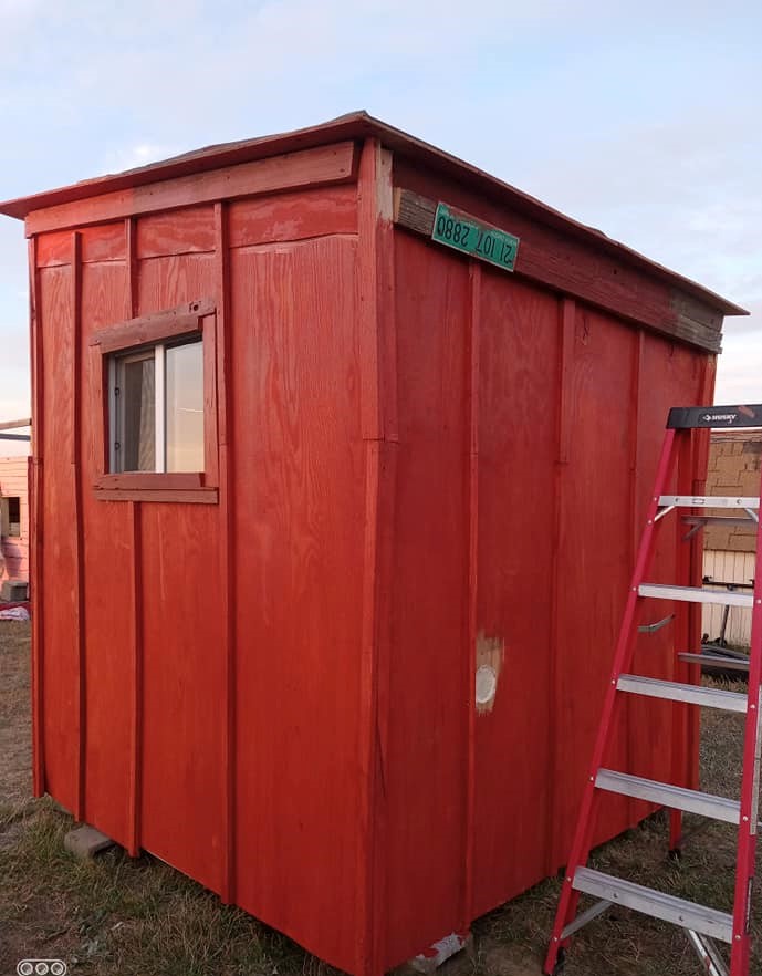 So, I mentioned the painting that needed to be done on the first building in our ‘old west town.’ Here are the results of that. Mind you, I work until 5:30 and then we have supper so I only have probably 2 hours to work on it in the evening before darkness falls and the temp cools off. It doesn’t work so well to paint in real cool temperatures or darkness, therefore, I was only able to accomplish painting two sides of the building.