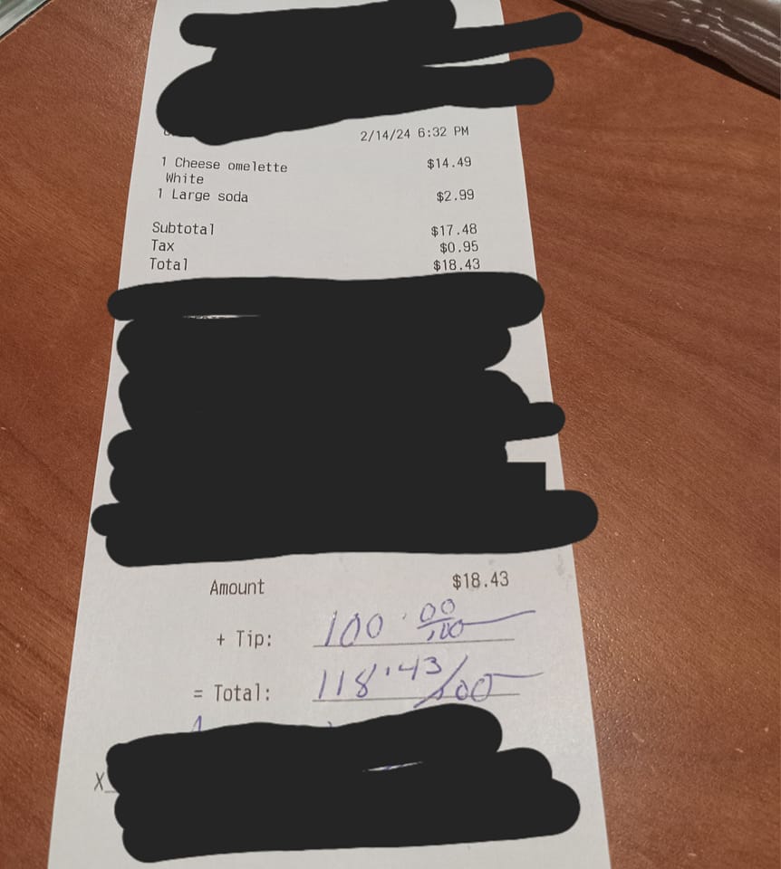 Some day, I hope I can leave a $100 tip for a well-deserving server. I’ve already envisioned in my head what kind of person I’d leave a tip that big for. It makes my heart sing.