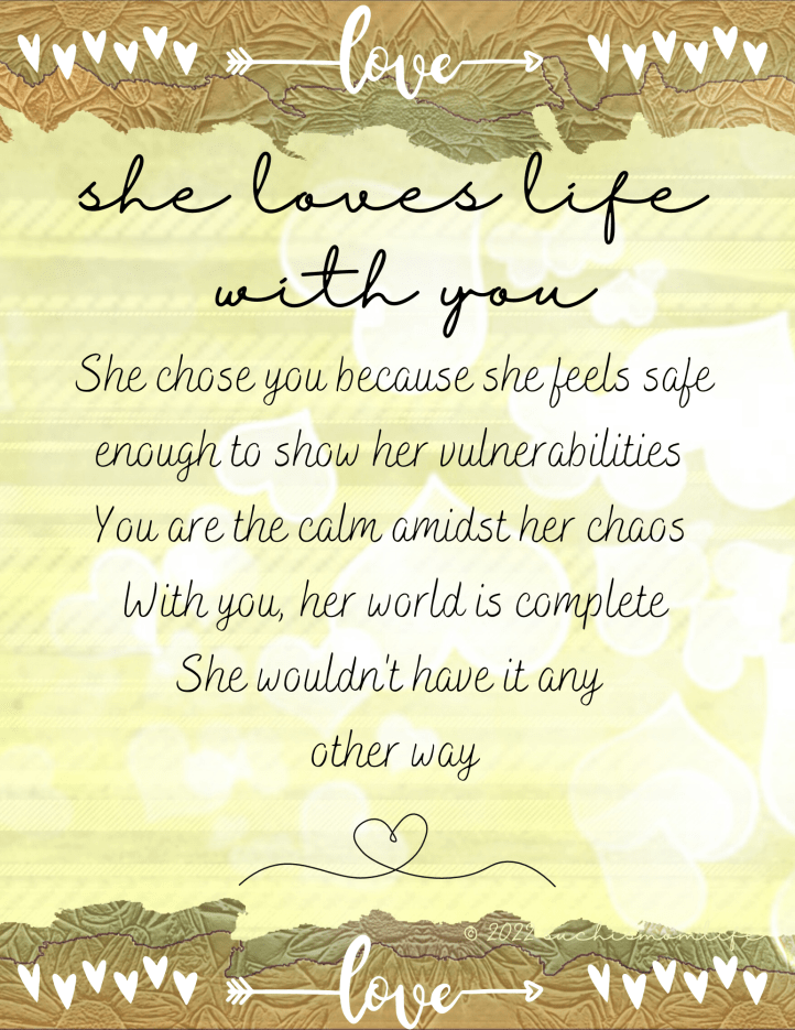 I’ve often wondered about my husband’s love for me. Through the years, life has gotten busier and, in that process, he and I have taken our friendship, our time, our energy……just the presence of one another for granted. He’s never been a super-romantic person, and I’m not sure I have, either. However, I do love a good romance. I used to read romance books and dream of the romantic husband I would have, lol. And, now it seems, I see romantic couples all around me.