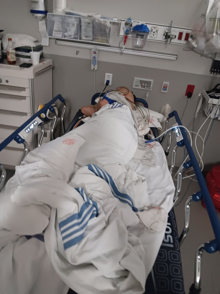I didn’t get to see her right away…not until after her initial evaluation and x-ray/CT scans. I was finally able to see her before she went to surgery. the first thing she said, ‘how’s D? where is he? Is he okay?”