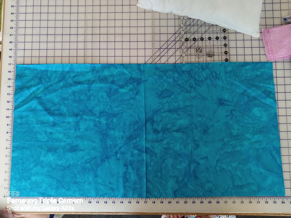 Using your rotary cutter and mat, trim the 1/2 yard of fabric to a 17 x 34 rectangle