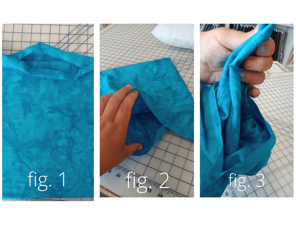 with the 17 x 34 rectangle folded in half width-wise and right sides together, sew 1/4″ seam on the left and right sides.